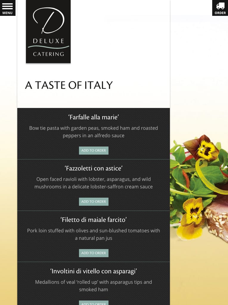 Deluxe Catering, Private Jet CaterersResponsive site with online ordering