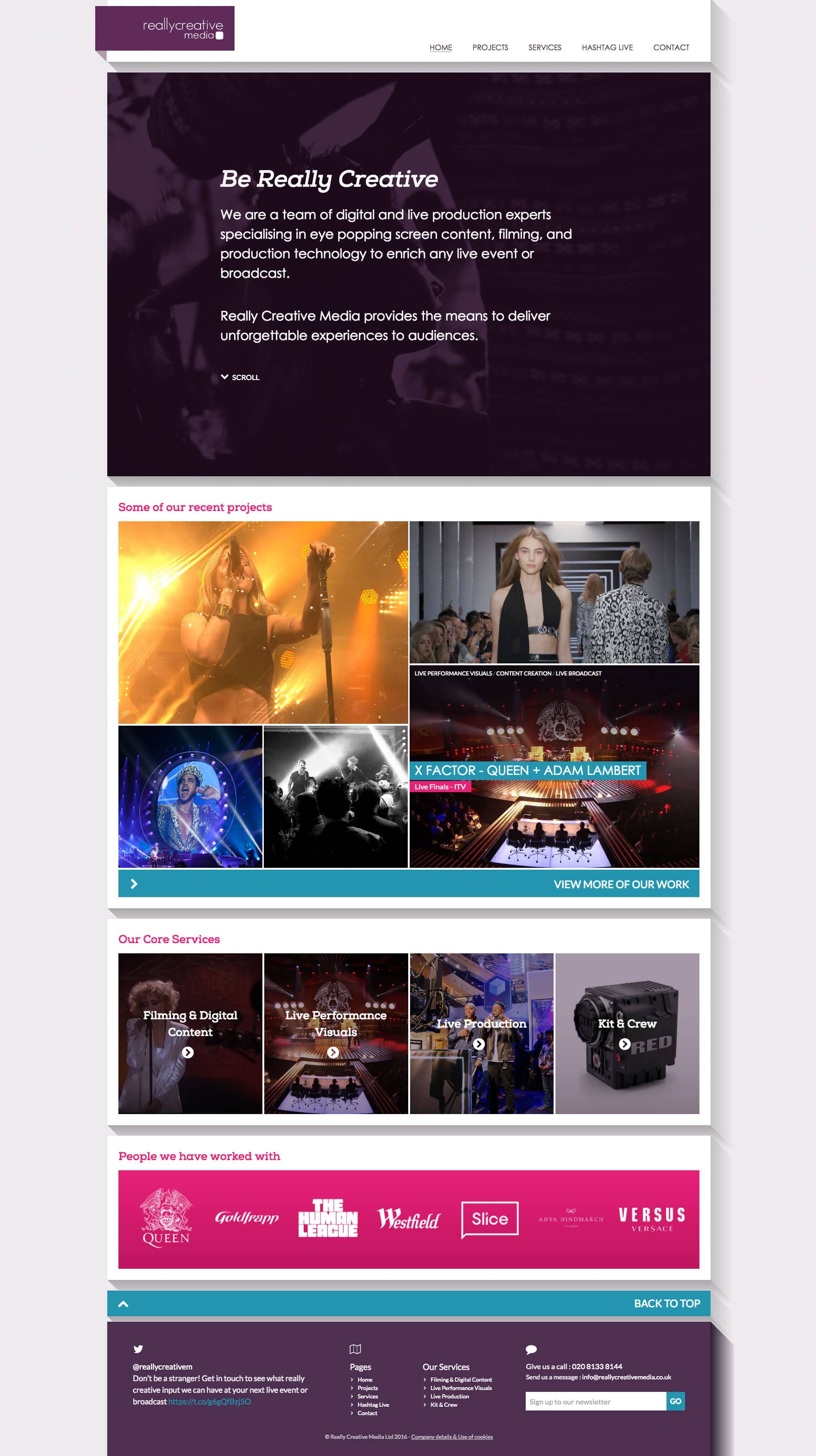Design and development of a WordPress site for digital and live production specialists Really Creative Media.