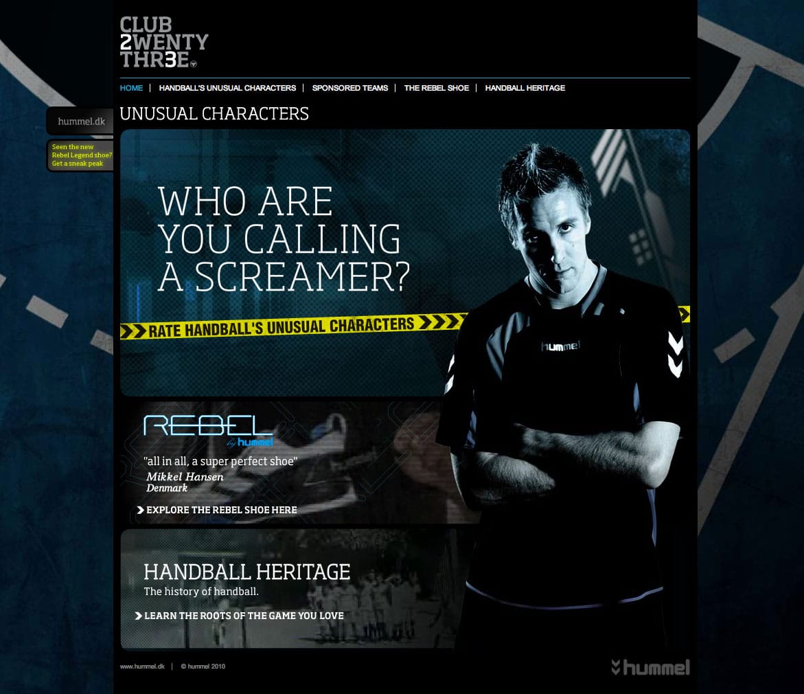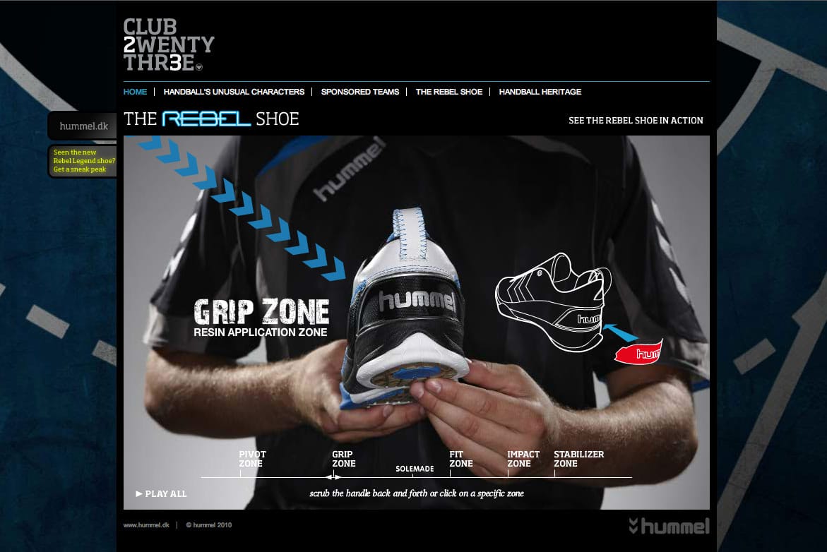 Campaign site for the Rebel Legend handball shoe by hummel.
